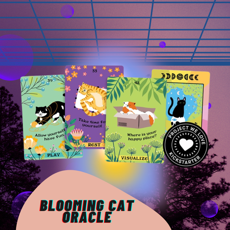 Introducing Blooming Cat Oracle, created by Jen Brown, maker of Blooming Cat Tarot! This 50-card cat and flower-themed oracle deck features magical feline friends of all varieties and colours. It was designed to encourage self-exploration with the help of positive guidance, affirmations, a soothing colour palette and cats that will make you smile.